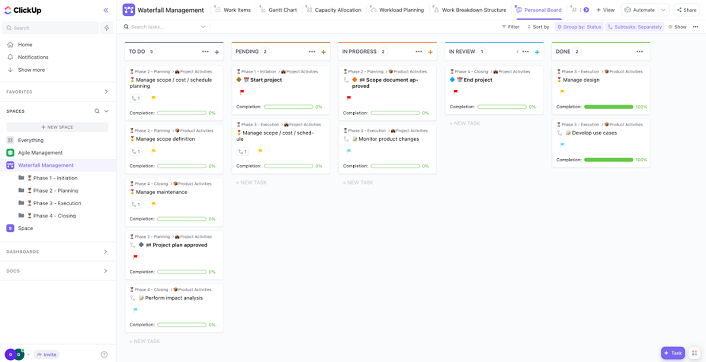 7 best project management methodologies for small business What is a Kanban board? How do you plan a Scrum? We’ll talk you through the top project management methodologies and how to use them for maximum benefit. Written by Helena Young Updated on 8 June 2023 Our Research Our expert team of writers and researchers rates project management software against the factors small businesses care about most - value for money (for both small and growing teams); depth of features; ease of use; quality of templates and ability to customise them, plus help and support when problems need resolving. Written and reviewed by: Helena Young Lead Writer Startups.co.uk is reader supported – we may earn a commission from our recommendations, at no extra cost to you and without impacting our editorial impartiality. Project management (PM) methodologies can be difficult to interpret. If you so much as dip a toe into the project management software market then you’ll likely be flooded with advice on using various techniques including ‘Kanban’, ‘Agile’, and ‘Scrum’.It can be tricky to work out how these methodologies actually work in practice. Each approach comes with advantages and disadvantages, and some pretty fierce defenders and detractors.Below, we’ll explain the seven top project management methods you should be aware of, as well as how each could be applied and what kind of teams and projects they’re best suited towards.By the end, you’ll be able to make a confident decision about which is the best fit for your business’s goals, KPIs and objectives. The top 7 project management methodologies are: Agile project management Waterfall project management Integrated Project Management (IPM) Kanban project management Scrum project management Scrumban project management Critical Path Method (CPM) project management How we test project management software for small businesses Which project management methodology is right for your business? Project management methodologies FAQs How do we carry out our software research? We’ve been advising SMEs on the top business tools in the UK for over 20 years. As part of our stringent research methodology, we use a combination of user testing and independent analysis to ensure that all of our results are accurate and updated for startups in 2024.Our most recent round of research included identifying the top 11 best project management (PM) systems on the market using six metrics:Value for moneyEase of useCustomer scoreTemplate customisationFeature offeringHelp and support featuresOnce completed, we used these scores to evaluate each software to examine how well its features align with / support specific project methodologies. Agile project managementWrike’s Agile project template gave us an interactive timeline to track progress as we moved through each project phase Agile Pros Continuous testing means any issues are addressed early on. Agile Cons Built for complex project delivery - unsuitable for simple client tasks. Following the agile methodology, your project will be iterative. It will move through a series of cycles one-at-a-time, with all resources being focused on one phase – otherwise known as a ‘sprint’ – at a time. Because of this:It is time-efficientIt has lots of achievable milestonesIt encourages collaborationThere are disadvantages to agile. Naturally, you’ll need to spend a lot of time communicating with clients, which can lead to delays.But overall this is a great, test-driven technique for streamlining work processes. By addressing customer feedback frequently, you’ll save a lot of time and hassle by identifying and preventing complaints before they occur.When to use Agile project management:Agile is a great method for client projects. Customers get a breakdown of the project at various checkpoints. During these meetings, they’ll be able to share their impressions and inputs, so teams have a chance to respond to any suggestions or requests.Best template for agile project management: WrikeWhen you’re working quickly, information can get confused. Wrike’s Agile project management template is organised into clearly-defined blocks. We found the app’s simple layout easy to navigate, making it easy for us to stay on top of task deadlines as we moved through each project phase. Waterfall project managementWhen testing the ClickUp Waterfall template, we liked that it clearly mapped out each phase of the project timeline Waterfall Pros The project scope, cost, and timeline are clearly outlined. Clients know exactly what will be delivered. Waterfall Cons Phases can’t be edited once completed so you’ll need very detailed briefs from clients. Like the Agile method, Waterfall involves dissecting a project plan into consumable ‘phases’. However, whereas an Agile approach is iterative, the Waterfall approach is sequential. It relies on teams never moving forward until the previous phase in a project has been completed. Because of this:It is data-backedIt has a clear structureIt is easy to planAn issue with the Waterfall method is that it does not invite customer feedback. Evaluation is deferred until bigger parts of the project are complete. This means that issues can be harder to fix without substantial time and effort.When to use Waterfall project management:We recommend Waterfall as a great option for shorter projects with objectives that are easy to define from the start. For example, rolling out a one-off product discount.Best template for waterfall project management: ClickUpWe recommend ClickUp as the best template for Waterfall project management. Its task dependencies feature is made for the Waterfall methodology. Through it, we were able to add “blocking” or “waiting on” tags to tasks to illustrate a clear order so we knew exactly which card to prioritise. Integrated project management (IPM)ClickUp’s huge list of features made it easy for us to share lots of project resources in IPM IPM Pros Team 