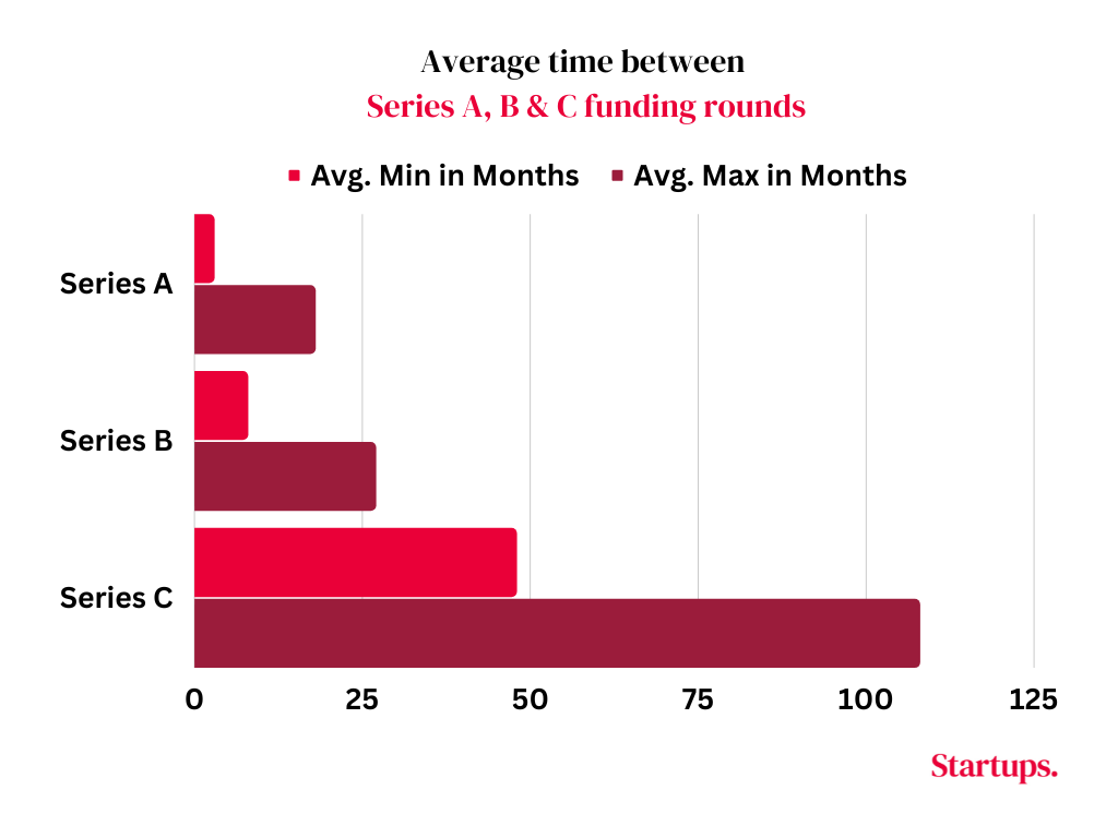 Series C can happen within a year of Series B, but is much more likely to happen two years after.