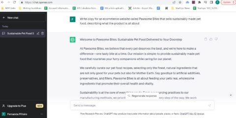 ✔️Very quickly turns around copy → After we put in the prompt, it took a matter of seconds to get paragraphs of information about Pawsome bites.